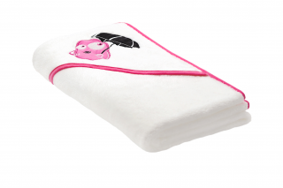 Детское полотенце с уголком Green Fiber & Totty, белое с розовым кантом